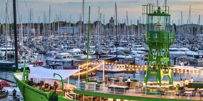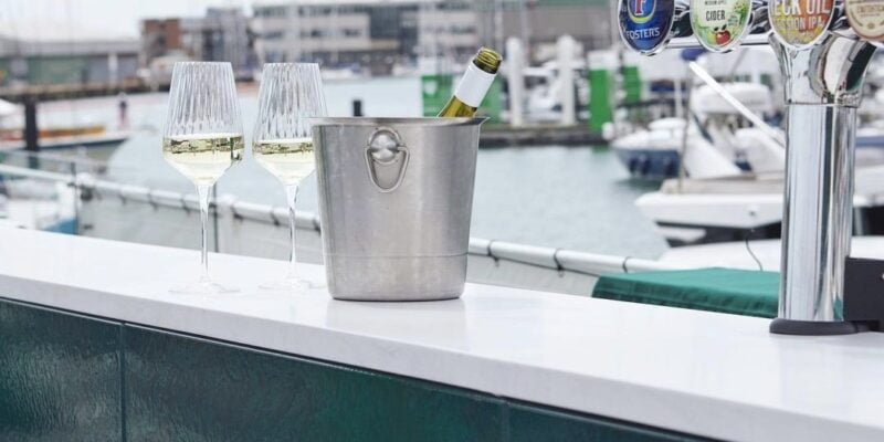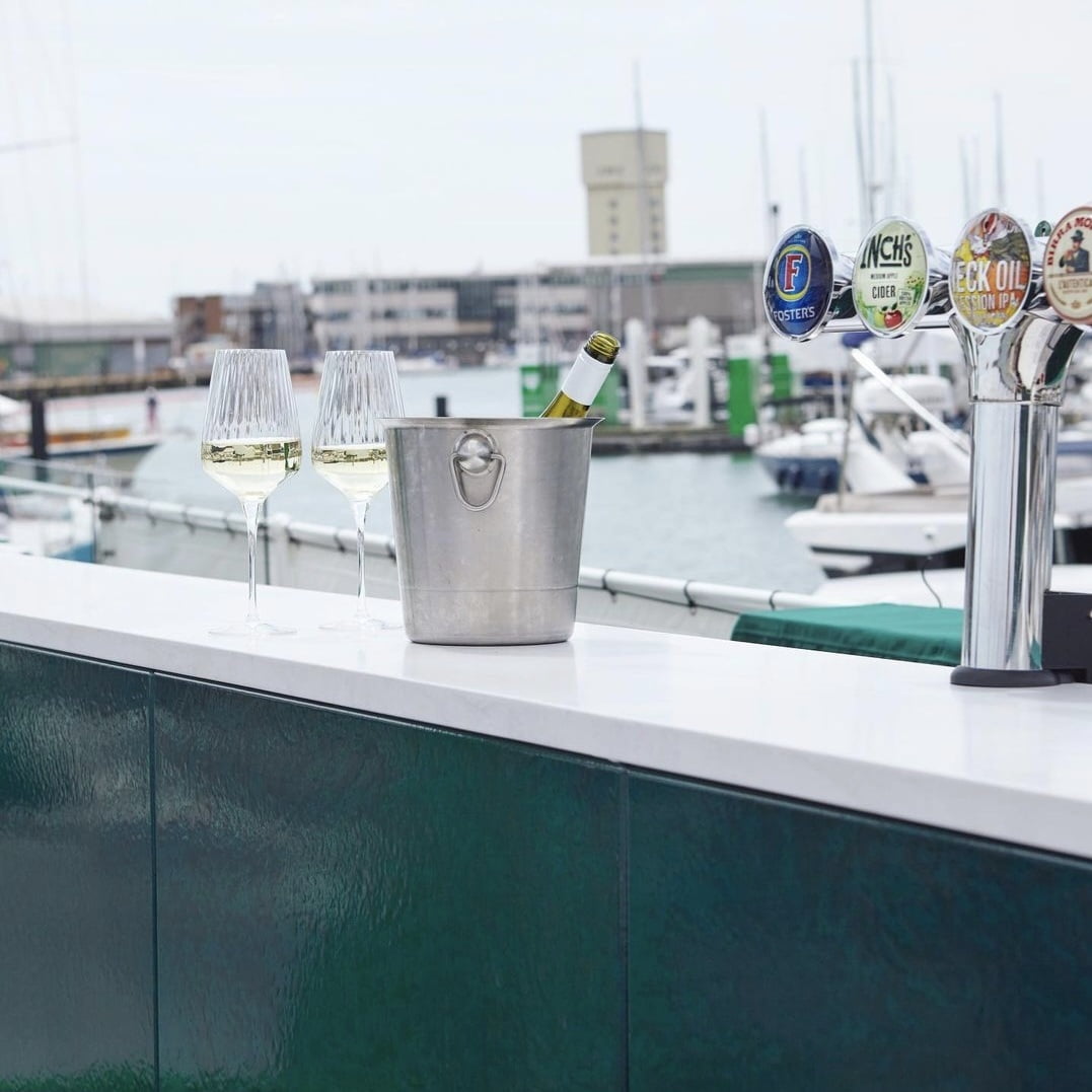 This was a great location to work at. We fabricated an indoor bar counter, an outside bar and a stunning curved table between the light tower out of Hi-Macs – Aurora Cotton